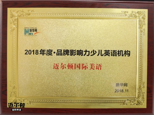 原标题:迈尔顿美语荣获新华网2018年品牌影响力少儿英语机构