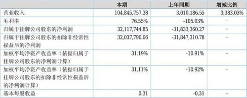 这份财报显示: 报告期内,赢鼎教育营业收入为1.05亿元, 同比增长3,383.03%, 归属于挂牌公司股东的净利润为3211.77万元。