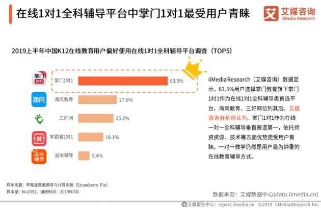 原标题:K12在线教育报告出炉 掌门学堂领跑双赛道