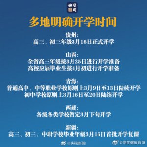 随着疫情防控形势持续向好 开学时间持续更新