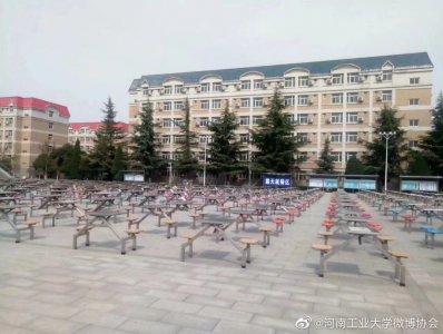 为防控疫情发展,河南一高校将300张餐桌摆满广场