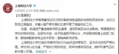 上海财经大学发通报:上财副教授钱逢胜被开除
