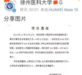 大一新生体测身亡 医院诊断为猝死目前警方已对事件展开调查