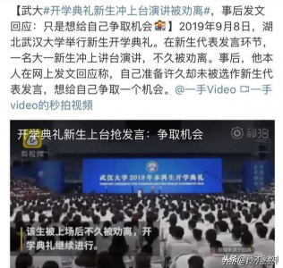 开学典礼新生冲上台演讲被劝离 该生称想给自己争取一个机会