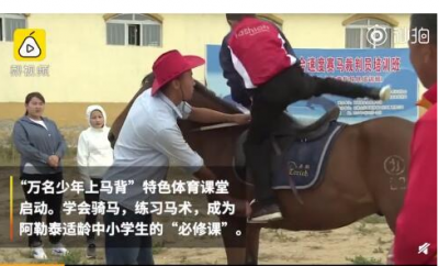 骑马成新疆学生必修课 阿勒泰市“万名少年上马背”特色体育课堂正式启动