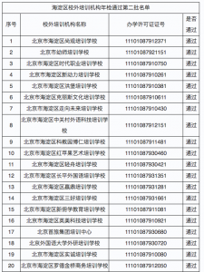 海淀公布第二批校外培训机构年检通过名单