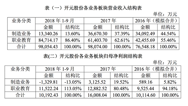 昨日,开元股份(300338.SZ)发布公告表示将剥离制造业务,成单一的教育培训公司,公司将专注于职业教育。