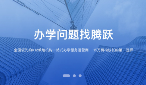 腾跃创立于2015年,创立之初是一个服务于K12培训机构校长的在线学习社群,2016年在获得A轮融资后上线APP平台,升级为一所针对培训机构校长的在线“商学院”,教授管理、招生、营销、师资培训等创业方法论。