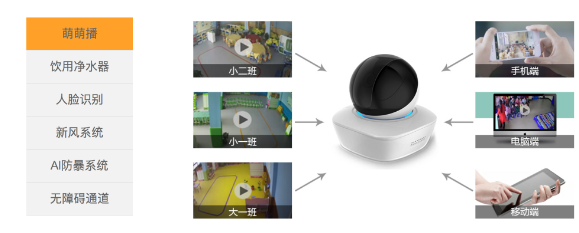 学校家园包括校园OA、校长信箱、人脸识别、萌萌播四个功能。以萌萌播为例,家长可以通过幼儿园分享的视频随时观察孩子在幼儿园的生活情况,孩子在幼儿园学习生活更放心, 通过点播手机端添加的学校网络摄像机,用户可以轻松查看所关注场所的实时视频。