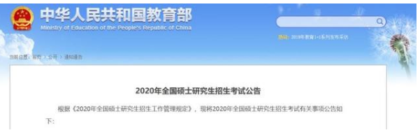 原标题: 2020年全国硕士研究生招生考试初试时间