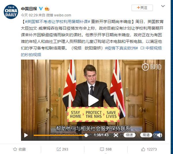 近日,针对当前形势下的教育工作安排以及何时线下开学等问题,英国教育大臣加文·威廉姆森在发布会上表示:英国暂时不考虑让学校利用暑假开课来补齐这段时间耽搁的课时。