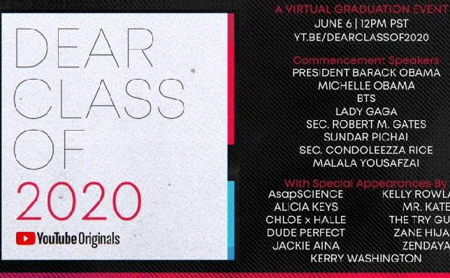 据外媒报道,YouTube将为2020届毕业生举办一场线上毕业典礼“Dear Class of 2020",向高中毕业生和大学毕业生致敬。