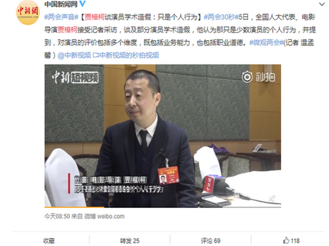 原标题:贾樟柯谈学术造假 这是一个个人修养问题和个案行为