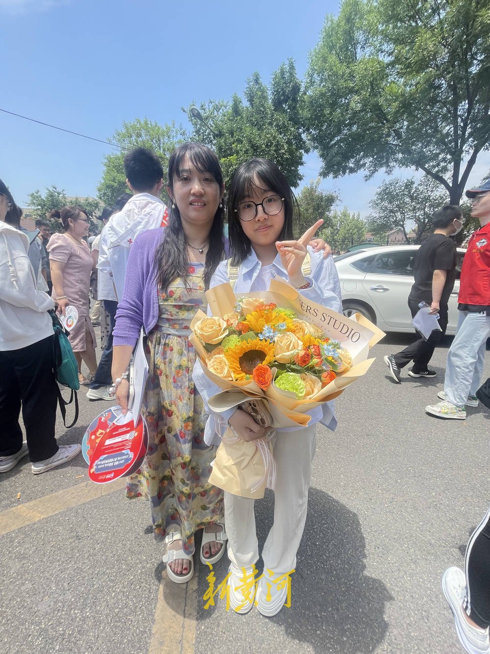 6月7日11点半,高考语文科目考试结束,此时,济钢高中考点外已经聚集很多家长,不少人手捧鲜花迎接孩子,在考点门口焦急等待考生出校。11点33分,第一个考生结束考试走出校门,随后其他考生也陆续出考场与家人汇合。