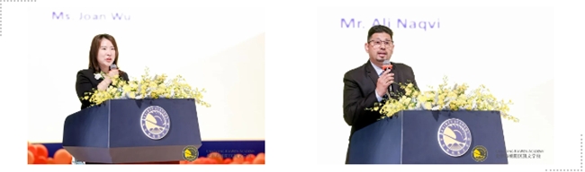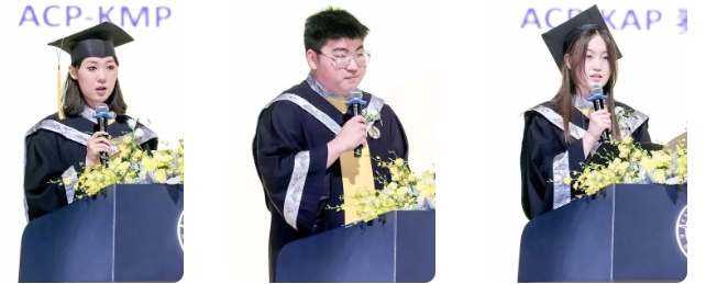 朝阳凯文2024届优秀毕业生代表Barbie L./ Allan C./ Claire Q. 上台致辞(从左至右)