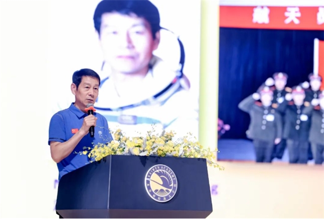 在毕业典礼进行到中段,一位重量级嘉宾的亮相瞬间点燃了全场的气氛。这位嘉宾非同寻常,他就是中国首批航天员、首席航天科普顾问赵传东先生。赵先生在致辞中讲到:“教育的力量不仅能够塑造孩子的未来,更能够决定一个国家的兴衰,通过教育来培养孩子们正确的科学观念和宇宙观是十分必要和重要的。
