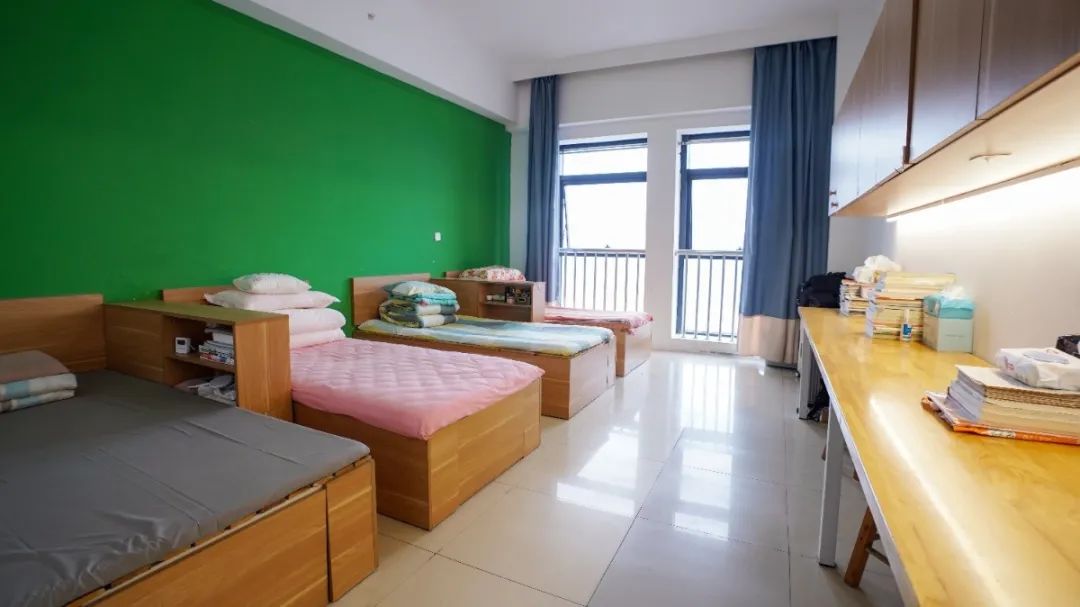 学校为学生提供4人间舒适公寓,每间宿舍配备空调、衣柜、独立卫生间,干湿分离盥洗室,24小时不间断热水供应。每层公寓楼洗衣机、直饮水机等设备一应俱全。