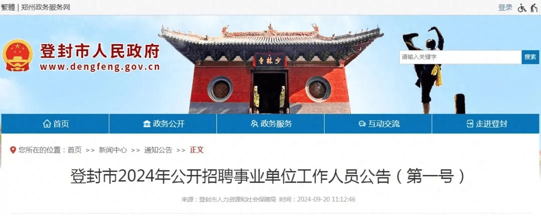登封市2024年公开招聘事业单位工作人员公告(第一号)
