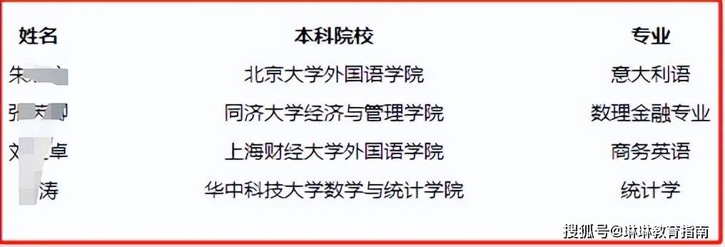 其中有4人来自北大,其余6人也均来自名校,有复旦大学本部的学生,也有同济大学、华中科技大学、上海财经大学以及中央财经大学的学生。