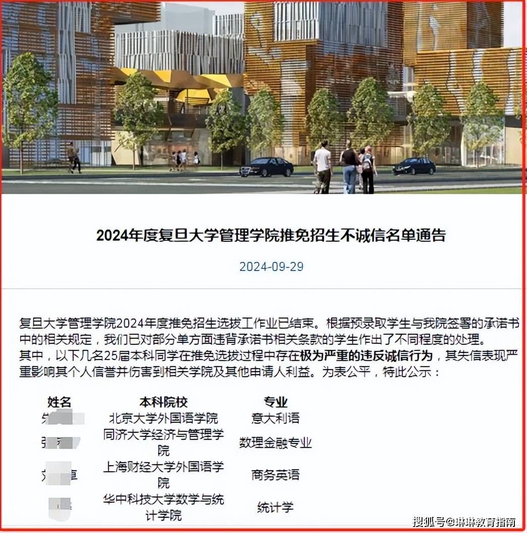 但这样的困境对于保研党来说,已经习惯到麻木了,直到今年,复旦大学公布的一则公告,打破了平静的假象。9月29日,复旦大学发布了《2024年度复旦大学管理学院推免招生不诚信名单公告》,在公告中,有10名学生被复旦大学列入了不诚信黑名单。