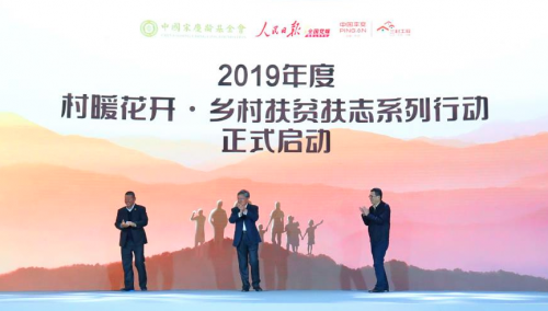 2018年12月,人民日报全国党媒信息公共平台、中国宋庆龄基金会与中国平安联合发起的“村暖花开·乡村扶贫扶志典型人物评选”活动。经过全国公开招募及评审团的专业评审,2019年3月,400位扶贫典型人物名单出炉——100名“乡村优秀致富带头人”,100名“乡村好医生”,100名“乡村科技好校长”,100名“乡村科技好教师”。3月21日,在评选活动于北京举办的资助仪式上,400位扶贫典型人物获评“扶贫扶志先进人物”。此外,他们每人将获得1万元现金扶贫资助。