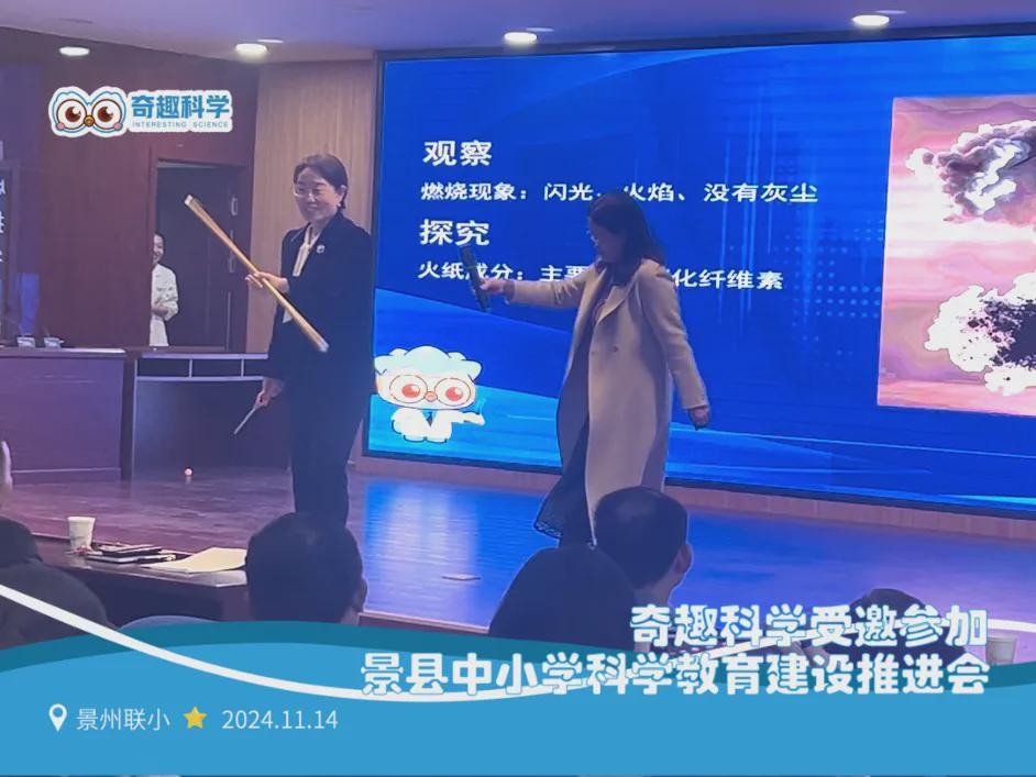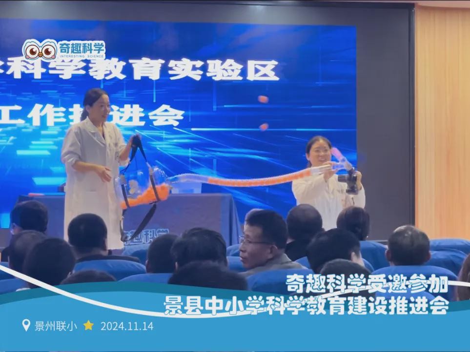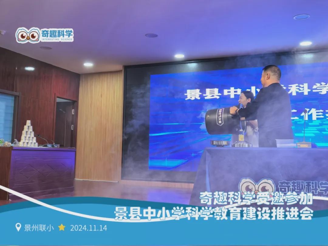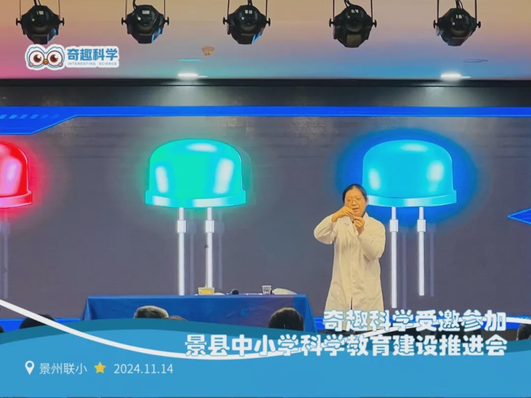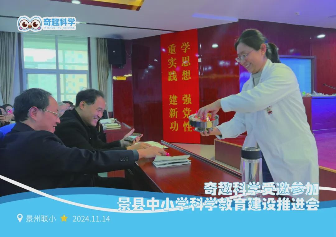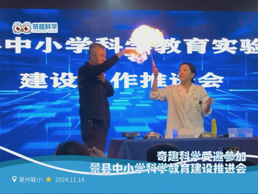 2024年11月14日,景县教育局召开了景县中小学科学教育实验区建设工作推进会,奇趣科学作为科学示范校受邀出席,并通过一系列精心编排的科学秀表演、生动的科学示范课展示以及先进的教学理念与体系的深入讲解,向景县教育局的领导及与会者们全面展示了奇趣科学独特的教学方法和卓越的教育成果。