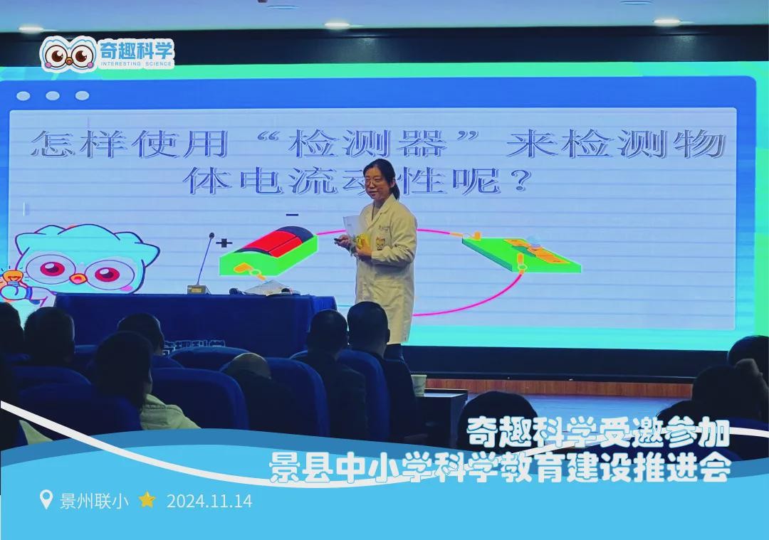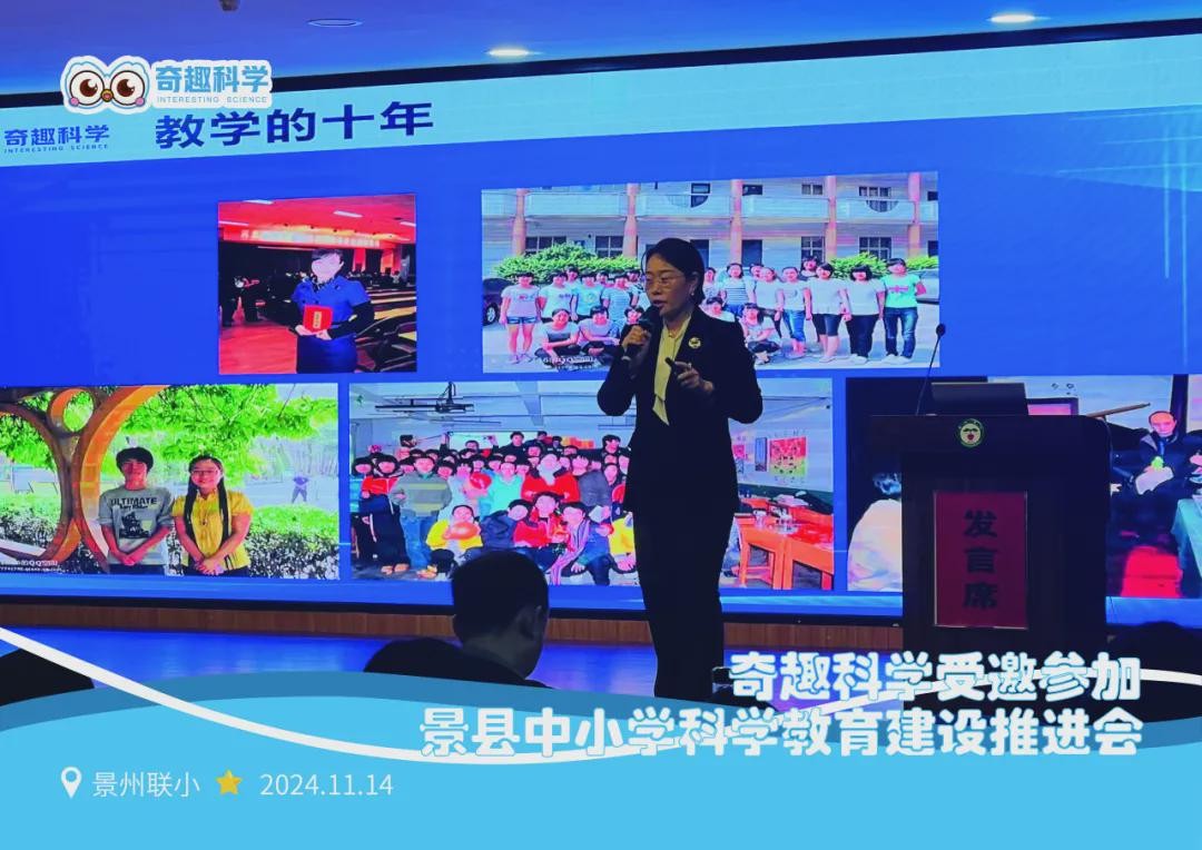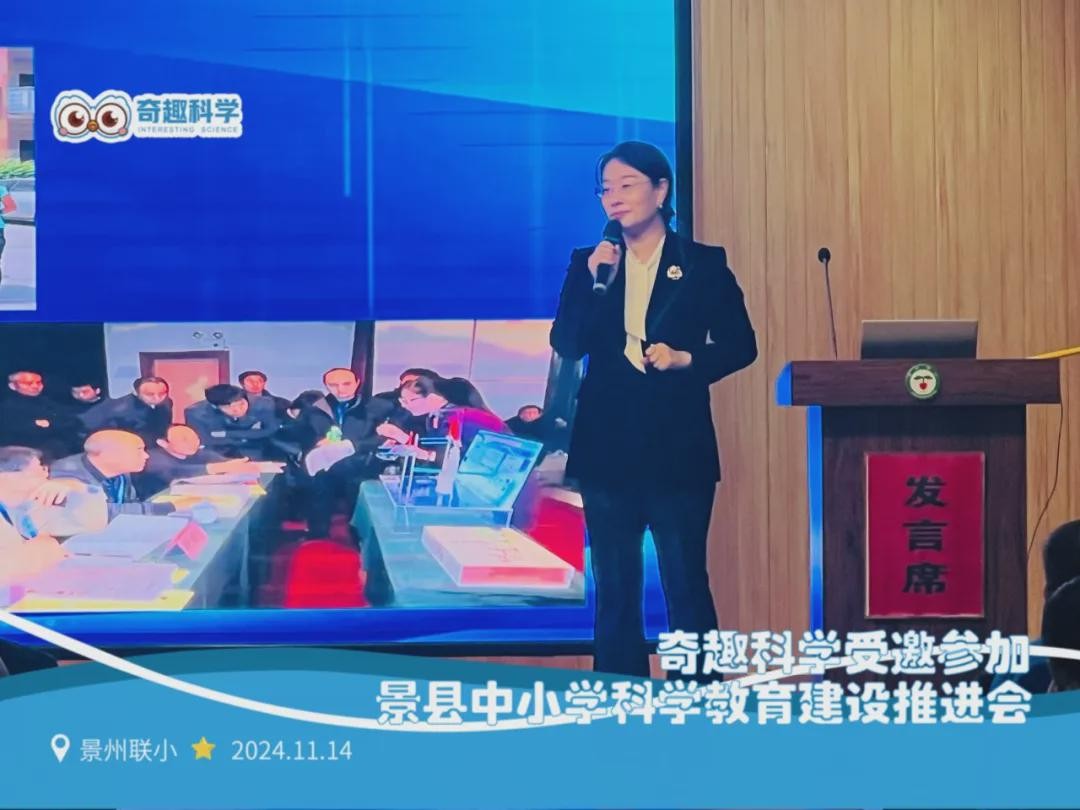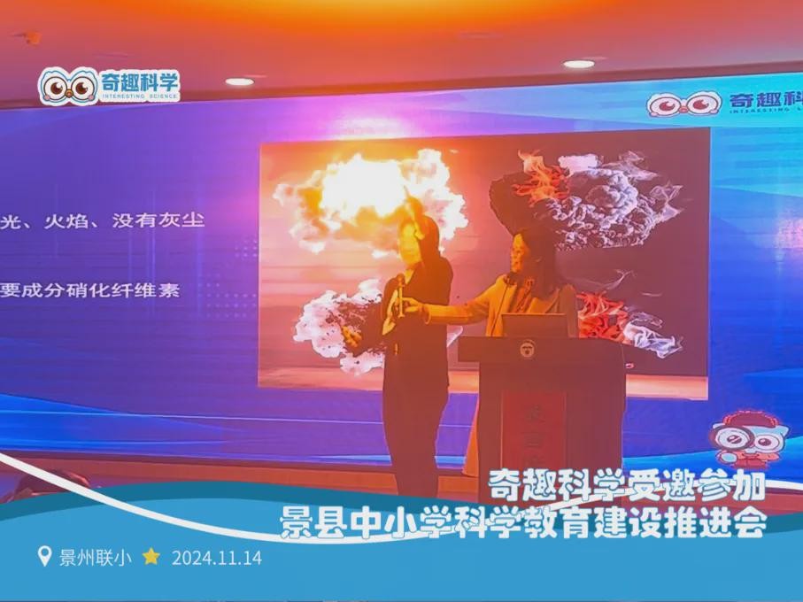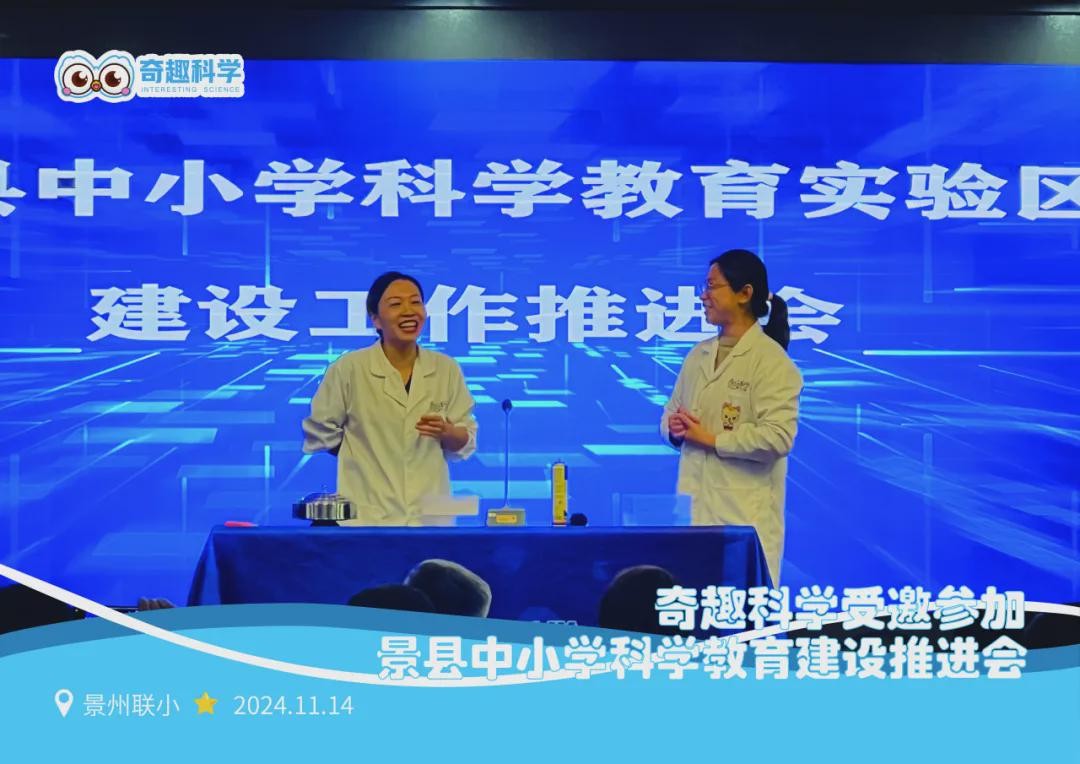 2024年11月14日,景县教育局召开了景县中小学科学教育实验区建设工作推进会,奇趣科学作为科学示范校受邀出席,并通过一系列精心编排的科学秀表演、生动的科学示范课展示以及先进的教学理念与体系的深入讲解,向景县教育局的领导及与会者们全面展示了奇趣科学独特的教学方法和卓越的教育成果。