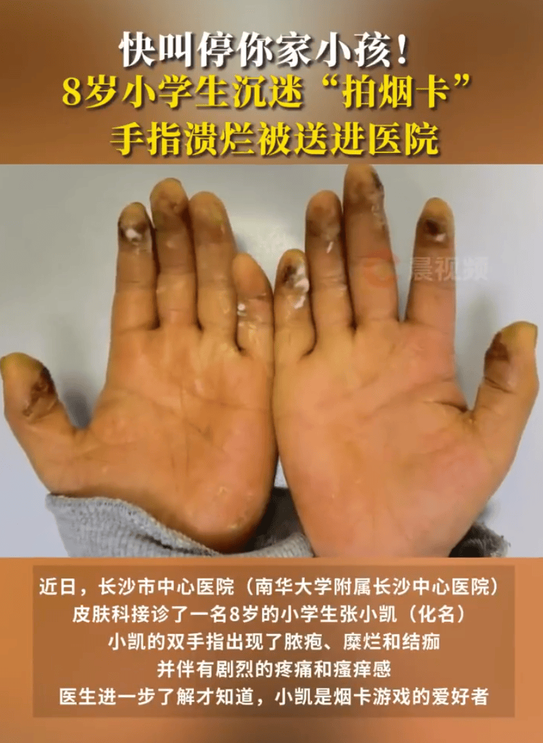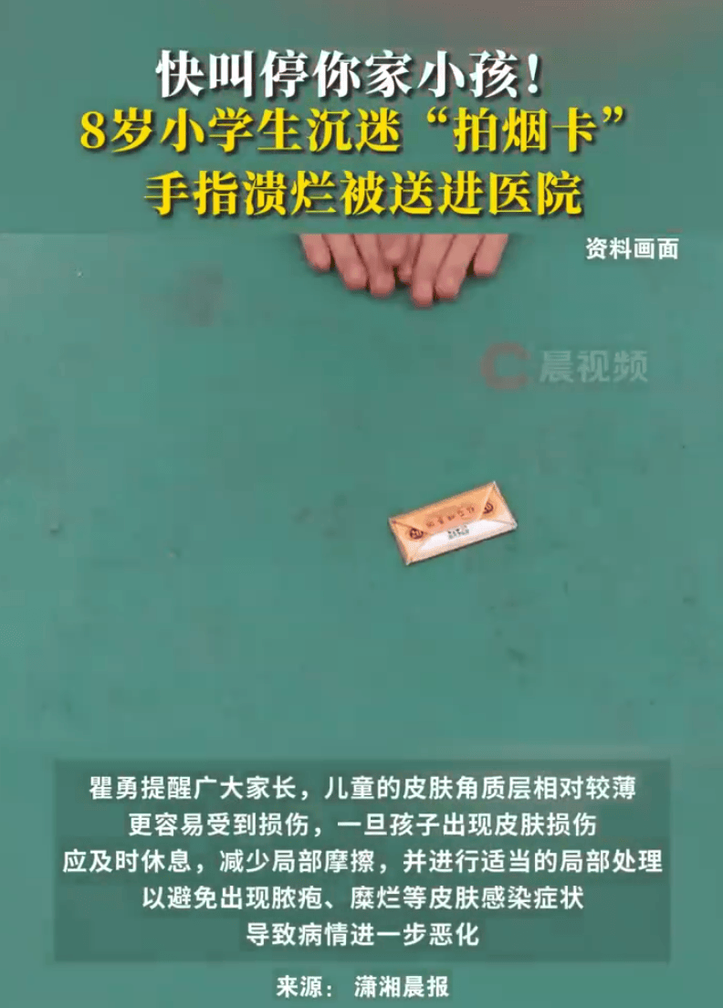 原标题:8岁小学生沉迷拍烟卡手指溃烂 抵制烟卡刻不容缓!