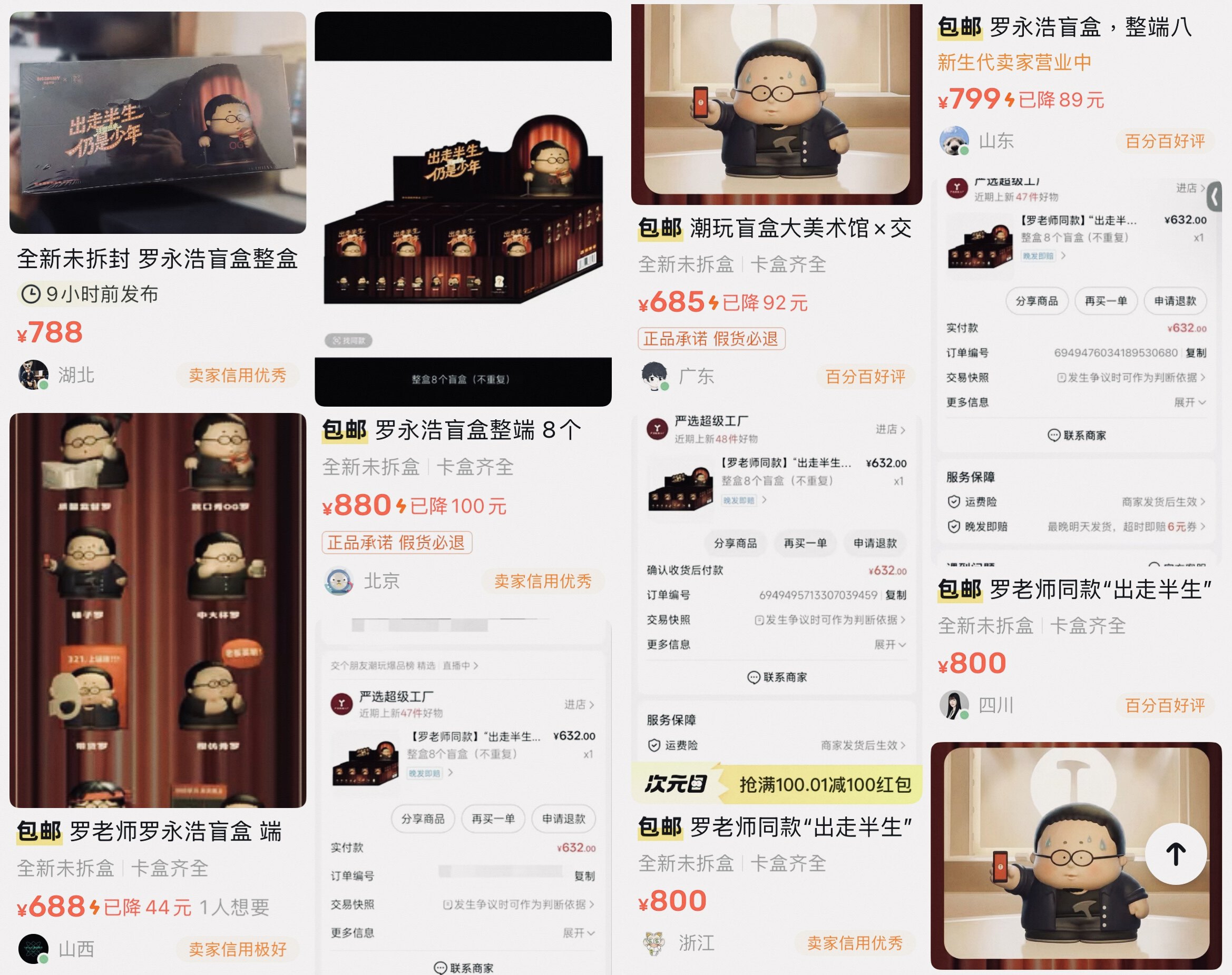 比如大家会关心盲盒里的老罗有没有秃——有的,年轻的时候不秃,后来就秃了。