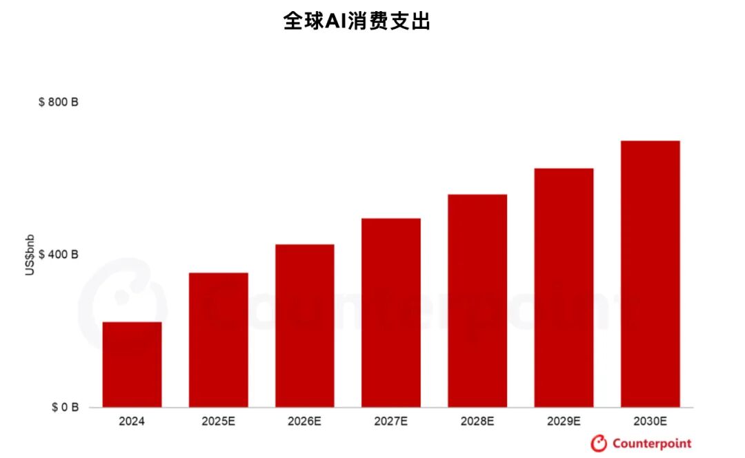 1月3日消息,近日,分析公司 Counterpoint Research 最新发布的《2024-2030年全球AI消费者支出预测》报告指出,全球在生成式 AI 领域的支出正在快速增长,预计将从2023年的2250亿美元,增长到 2030 年的6990亿美元,年复合成增长率高达21%。报告强调,增长将由终端用户软件及其运行所需的硬件共同推动。