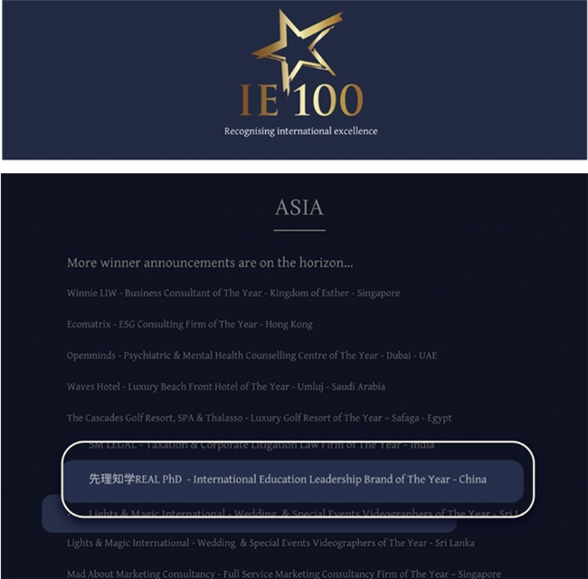 据悉,该奖项由International Business and Education Review Association(国际商业与教育评审协会)发起设立,是全球商业领域具有较高认可度的荣誉之一,旨在表彰全球范围内各领域展现卓越表现、创新能力与行业领导力的机构,为推动行业进步树立标杆典范。奖项背后,是国际评审机构对参选机构全方位实力的严苛审视。International Elite 100 Awards以其覆盖全球163个国家的广泛影响力和“merit-driven”的公正评审体系著称。此次获奖,意味着先理知学REAL PhD在服务模式创新、用户口碑积淀、资源整合能力及行业贡献度等多个维度,均展现出与国际标杆相匹配的卓越水准,其影响力通过奖项渠道进一步辐射至全球受众。