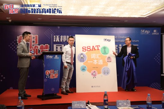 活动的最后迎来了本次论坛的重头戏,由沃邦教育SSAT教研组组长郑老师主编的《SSAT词汇一本通》正式发布。现场举行了隆重的揭幕仪式,王文山老师及胡军先生上台揭幕,并向当天到场的所有观众,免费赠送了此本书籍的郑老师限量签名版。