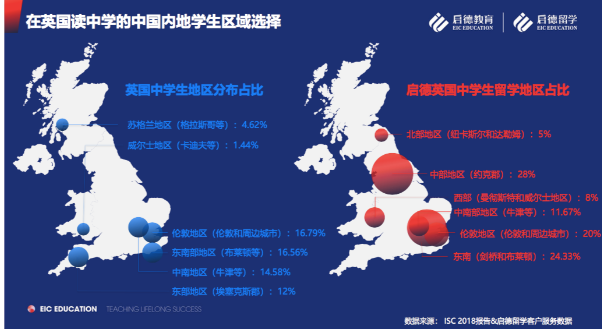 ISC 2018报告数据显示,在英国中学生地区分布上伦敦地区(伦敦和周边城市)占16.79%,东南部地区(布莱顿等)占16.56%,中南地区(牛津等)占14.58%。