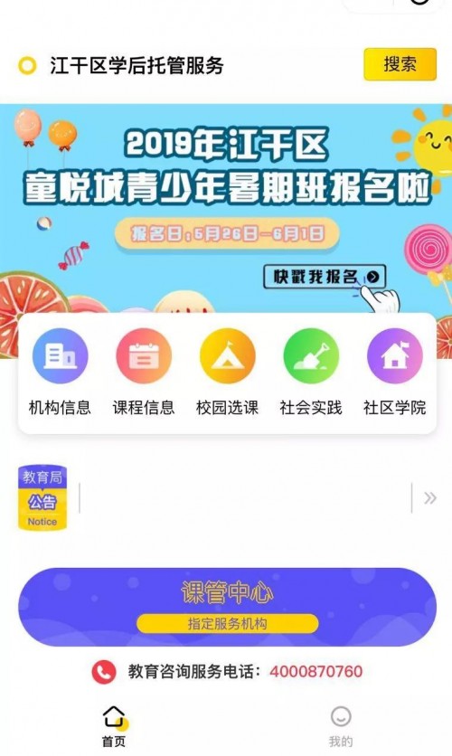 ▲课管中心江干区课后托管服务小程序部分界面