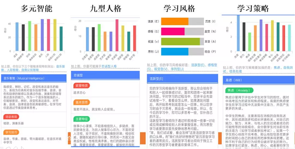 ·多元智能、学习策略、学习风格测评让我们可以更科学的了解学生当前存在的学习问题,充分发挥学生智能潜能,找到提升学习效果的策略;