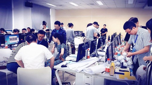 所有的老师在接下来的课堂上,像孩子一样分组动手完成“细胞机器犬”的搭建、编程和训练。就这样,一节寓教于乐、生动活泼的人工智能示范课很快就结束了。很多老师意犹未尽,发自肺腑的称赞:“人大附中不愧是我们中国中小学人工智能教育的制高点。他们的教师如此善于创新,有这么多新奇的方法,竟然通过这么简单生动的形式就把深奥的人工神经元概念融入了每个学生的知识体系中。”