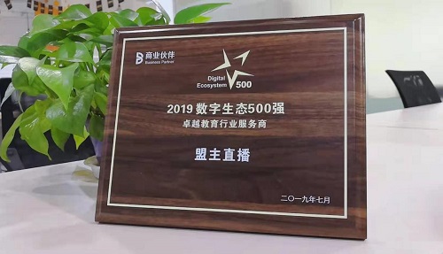 原标题:盟主直播跻身数字生态500强 斩获卓越教育服务商大奖