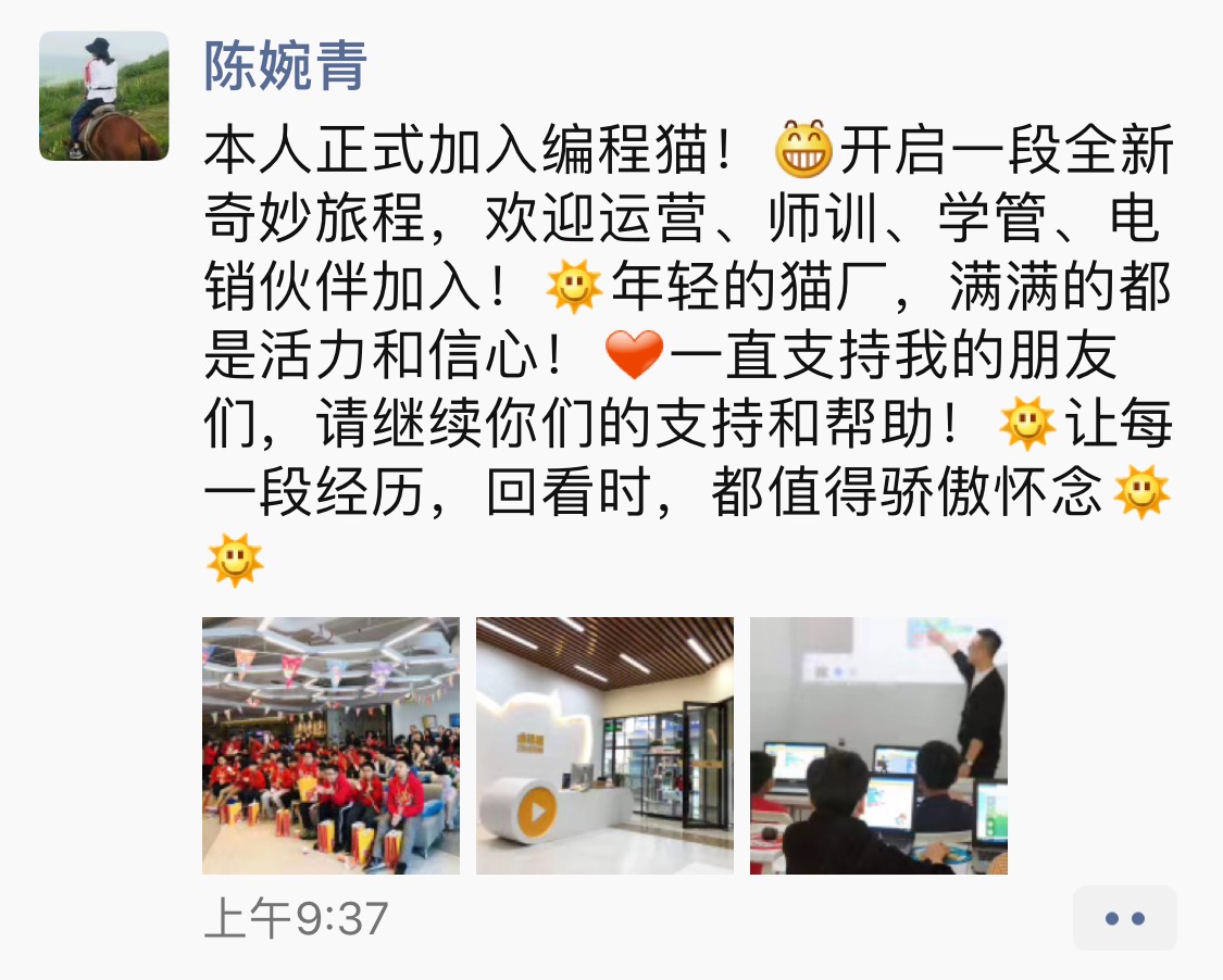 新东方在线儿童产品事业部总经理、酷学多纳品牌负责人陈婉青在朋友圈宣布,其正式加入编程猫,出任COO一职。