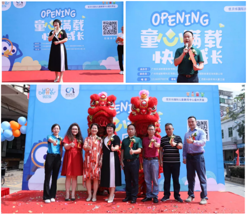 优贝乐番禺校区开业当天,优贝乐国际儿童教育集团总经理高霞女士,诚安时代董事长任武先生,华南师范大学心理学实验中心主任曾祥炎先生,广州大观教育集团董事长辛小玲女士,在开业当天分别发表了致词,并为校区献上最真挚的祝福。