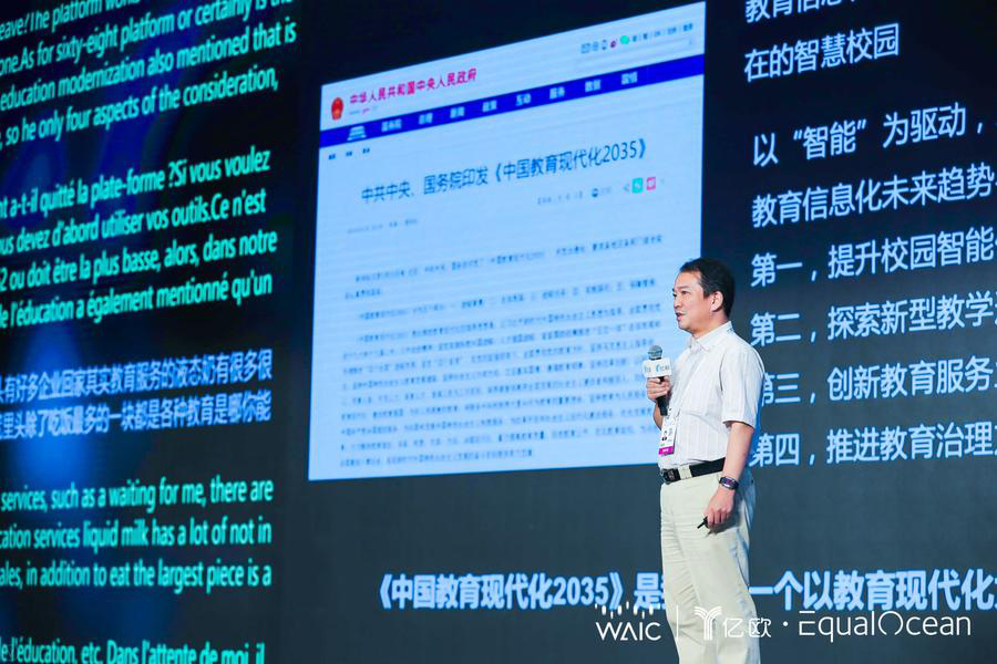 我们国家也在行动,教育部发表了《教育信息化 2.0 行动计划》,尝试为智能教育搭建很好的平台。刚刚何院士讲了 " 工欲善其事,必先利其器 ",没有很好的工具、没有很好的平台肯定做不好。《中国教育现代化 2035》中提到 " 智能 " 为先驱,以人才培养为核心,有四大方面的考量:提升校园智能化、新型教学模式、教育服务新业态、推进教学治理方式变革。有很多教育业态已经不在校园里,大家看看商业 shopping mall 里除了商业最多以外就是教育,能说它是企业吗?其实也是教育的延伸。