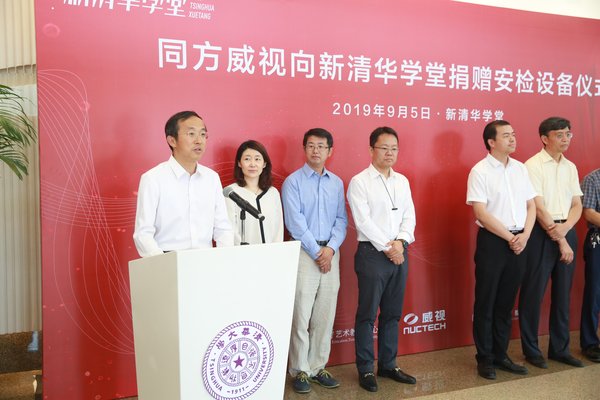 2019年9月5日,同方威视向清华大学新清华学堂捐赠安检设备仪式在新清华学堂举行。清华大学党委副书记向波涛,校务委员会副主任、校工会主席王岩,同方威视党委书记、董事长兼总裁陈志强,工物系主任王学武等出席仪式。仪式由艺术教育中心主任赵洪主持。