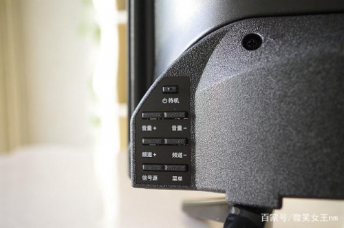 如遇到意外状况,例如遥控器找不到,电视机背面右下角有两列集中的键位,是开关机按键和调台调声音的按键,便于手动操作电视。