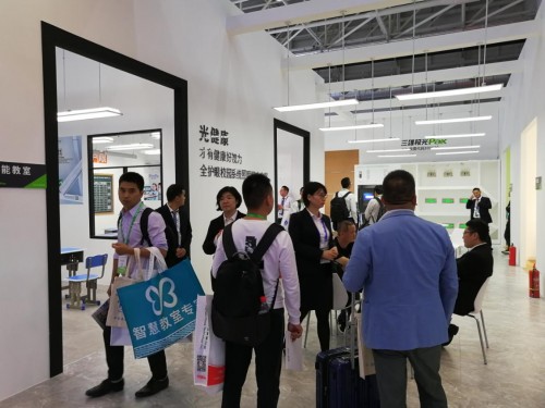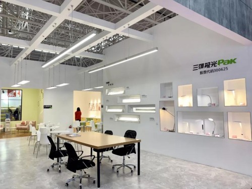 此次三雄极光在展位设计上别出心裁,特地设置了多个情景体验空间,俨然成为一个微型校园,全面展示了标准教育光环境解决方案,让到访的客户更直观的感受定制光环境。