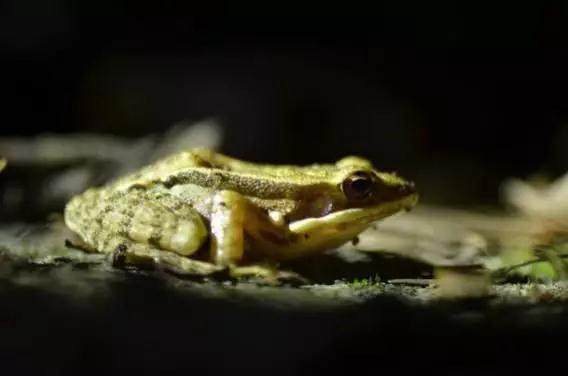 At this time, a 5-6 cm long Hylarana latouchii jumped out of the grass. Everyone looked at it from above carefully. It was dark yellow. From the side, there was a thick brown thread connecting from its head to the buttocks. From the front, it lowered its head, it twisted its feet, it was ready to jump out at anytime.