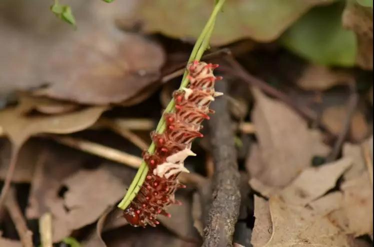 “Look, caterpillar.” I didn't know who shouted that. Teacher Qingjiang rushed over to look “Ha, this is not a caterpillar, this is a papilio larva. You see, it doesn't has thorn, it feels soft. When it encounters a natural enemy, it can put out a pair of tentacles in its head to scare off the natural enemy.”