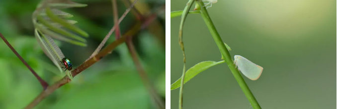 ▲绿缘扁角叶甲 ▲蛾蜡蝉