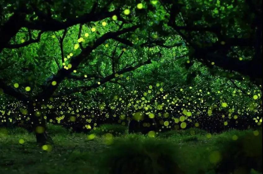 慢慢的,一些螽斯和蟋蟀开始演奏悦耳的弦乐;紧接着,很多蛙类开始演奏起上下起伏的管弦乐,其中还夹杂着领角鸮的声音,一场大自然的交响乐就开始了,煞是热闹;慢慢的,舞台上出现了一个又一个的伴舞:萤火虫,她们舞动着身姿,忽暗忽明,游往上飞,那璀璨金黄的光带点青,像是一个个迷失了路的星星,四处游荡……我们四周都点缀了很多黄绿的宝石,闪耀着,为我们指引回家的路……