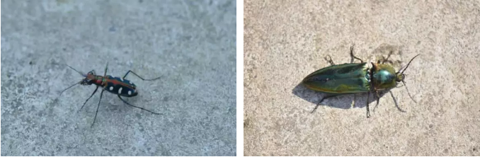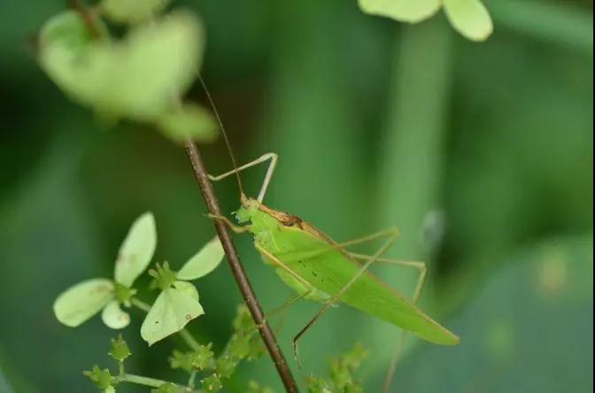 路边翠绿的条螽,像一群茶余饭后出来散步下棋的老人,慢条斯理地吃着苔藓和青草,爬来爬去;披红带绿的甲虫在叶子间爬来爬去,像个油漆工,身上五颜六色,七彩斑斓;棕色的螳螂像个忍者,一动不动立在草丛之中,脑袋上下左右转来转去,两把大刀收在腰间,时不时动动身子打起了“螳螂拳”;粉嫩的蜡蝉像个害羞的小姑娘,往左边看她,她就往右边躲,往右边看她,她就往左边躲;威武的八星虎甲横在半路上,披着坚不可摧的铜红铁青的金属盔甲,一双獠牙咯咯直响,像个拦路强盗,连螳螂都要避让三分。