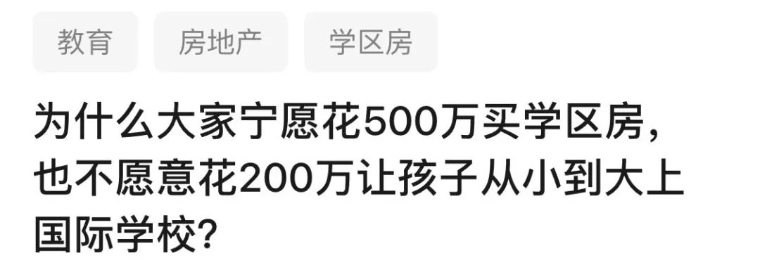 为什么宁愿花500万买学区房,也不愿花200万送孩子从小到大上国际学校?”这个问题是我之前在网上无意中看到的。