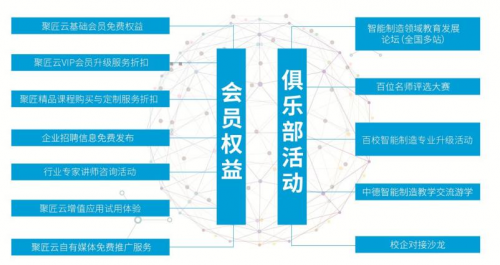 聚匠俱乐部以聚匠云机构端为载体,汇聚智能制造领域的知名院校、优秀企业、行业精英,通过开展多角度、多层次的活动将资源进行立体整合,为会员提供线上课程等共享资源服务,以及学习管理、测评管理、云实训教学等增值应用服务,促进教学资源共享,推动校企深度合作,全面加速产教融合。